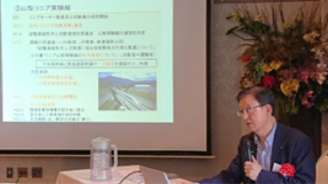 総会に先立ち、JR東海でリニア開発にも携わられたシーエヌ建設㈱代表取締役社長の山口義久様(C54)を講師にお迎えして、「鉄道の歴史とリニアの現状」と題してご講演いただきました。