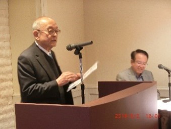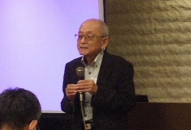 第1部の総会は、現支部長の馬場清和さんが検査入院の退院日にあたり、ご出席がかないませんでしたが、新支部長選任の後、竹田敏洋新支部長(S41)の挨拶。続いて加戸孝太郎氏(B49)による会計報告のあと、名古屋工業会 加川純一理事長(K49)により名古屋工業会の近況についてお話しを頂きました。