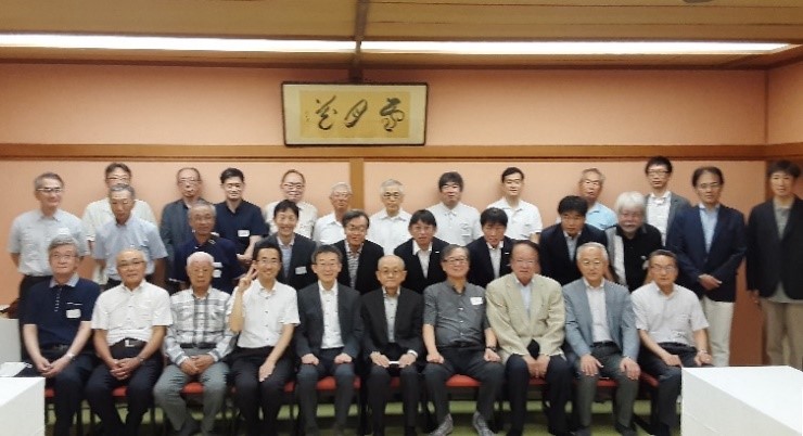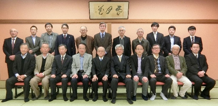 総会の後に同じく料亭小六庵で懇親会が行われました。黒田茂評議員・富山幹事(M47)による乾杯の音頭で始まり、和やかな歓談と出席者全員の近況報告がありました。終わりに名古屋工業大学の学歌を吉岡正盛評議員・福井幹事(B58)の指揮に従って全員で斉唱して盛り上がりました。