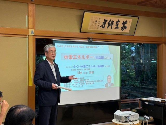 講演では羽木秀樹氏(K47福井会員)が「水素エネルギーの利活用」について卓話を行い、エネルギーの未来を考える上で大変有意義な内容となり、参加者の関心を集めました。