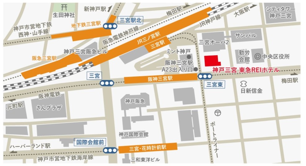 (神戸市中央区雲井通6-1-5 JR三宮駅南東 徒歩2分)