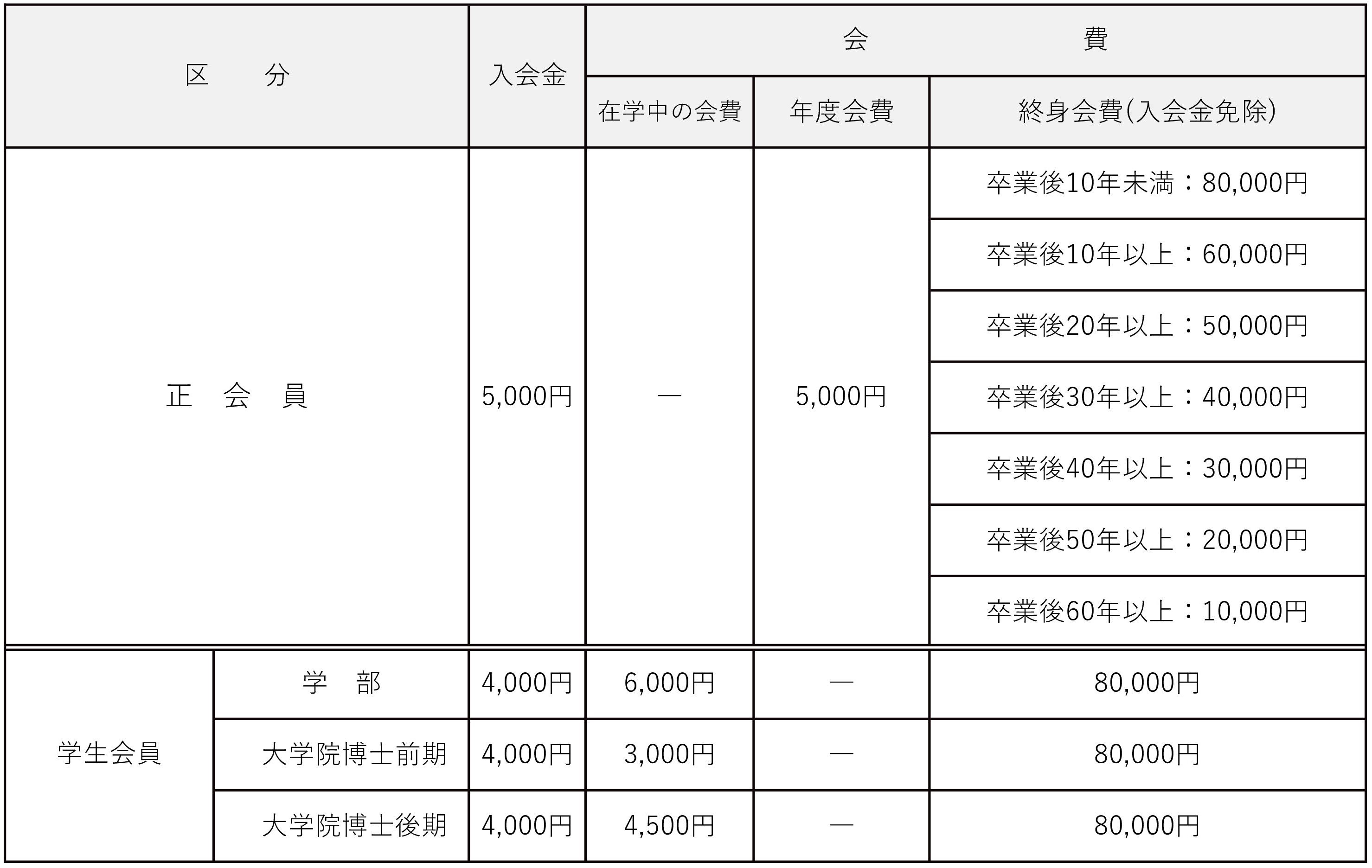 ○会員資格及び会費 ※クリックすると大きく表示できます↓ 単位:円