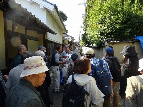 ・今回は旧街道の狭い道を歩く事より、交通事故のリスク対策としてワイヤレスガイド機をレンタルし、参加者に配布してガイドさんの