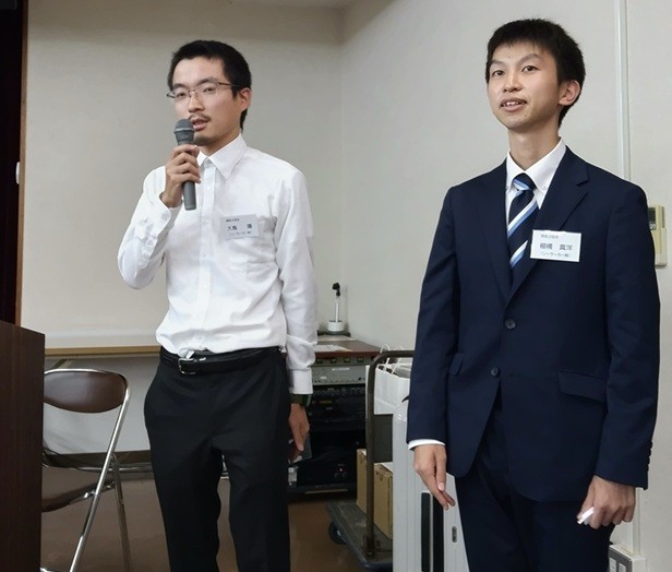 講演会に続いて飛び入りで、名工大ソーラーカー部の大島陽さん(4回生)、棚橋真洋さん(2回生)※から、8月のWorld Green Challenge (WGC) 2025秋田大会で総合優勝し、2年後のWorld Solar Challengeオーストラリア大会の準備に着手している、という素晴らしい報告がありました(写真④)。