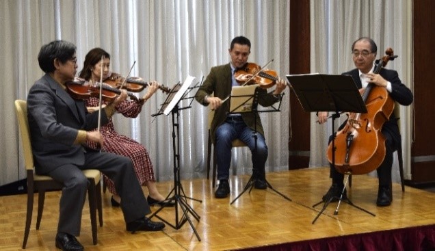 (D39)によるハーモニカ演奏が披露され、また出席者中の最高齢で今年100歳となられた小関